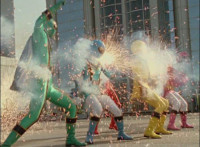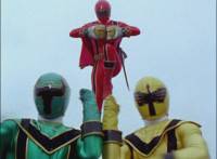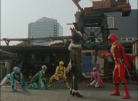 Once again, energy wolves stripped out of Sentai footage and inserted into US footage, saving dozens of dollars in the effects budget. |