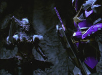 As Koragg approaches the downed Clare with his sword drawn, Necrolai lands in the foreground. |