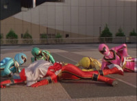 Close-ups of each Ranger, lying on the ground, helpless and groaning whatever. |