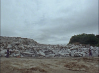 Distant side angle on Koragg facing Clare across the quarry as she readies her staff. |