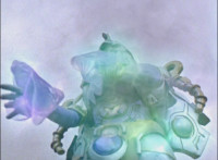 Koragg leaps through the air, passing into a seal, and growing gigantically. |