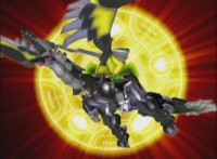 Mystic Dragon tries to fly past Morticon, but he grabs it with both arms, speaks, then flips it over, and slashes it, bursting it in midair, causing all four Mystic Titans within to drop to the ground. |