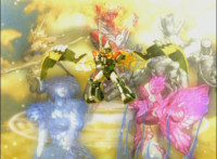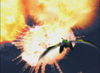 Cuts follow-ups of Mystic Phoenix sparkily slicing past Morticon on Catastros. |
