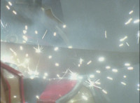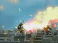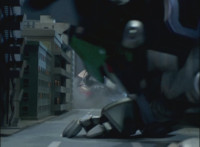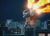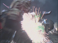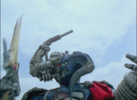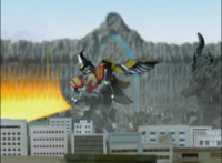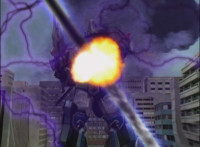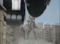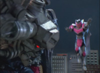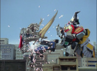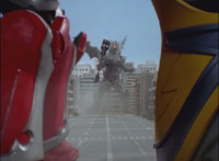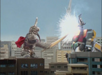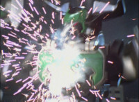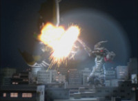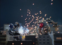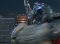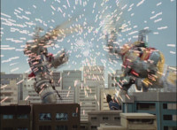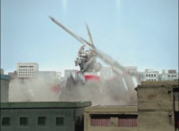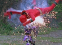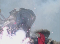 Cuts follow-up additional shot of Megazord falling back. |
