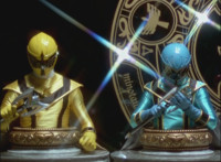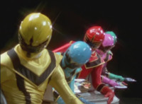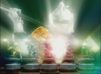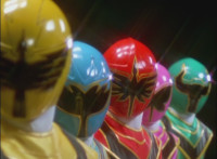 The Rangers twirl their Magi Staffs about. |