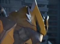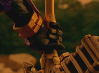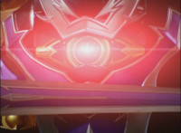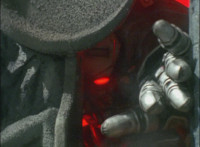 Close-up of Koragg's shield as it opens, and its gem gleams. |