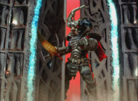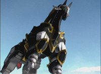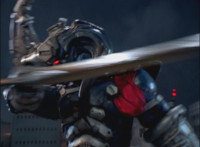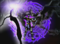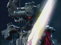 Morticon talks, as he charges up his sword, then charges up his sword with black flaming energy. Expelling exhaust through his head pipe, Morticon readies his sword, then slashes forth. |