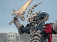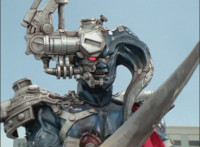 Centaurus Phoenix Megazord flame-whips at Morticon twice. |