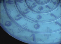 Extra close on the spell wheel, as he innermost ring connects, symbol to symbol, and gleams with bluish power. |
