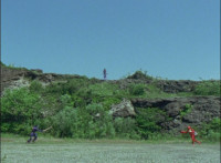 Koragg faces Red across the field as Clare remains on the cliff above them. |