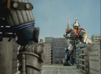 Cuts close-up follow-up of Megazord reacting. |