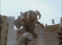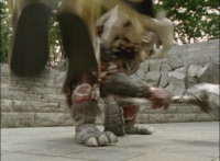Cuts follow-ups of monster stomping foot and gripping spike. |