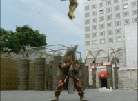 Cuts follow-ups of SSM grabbing Behemoth, then sparkily punching him back. |
