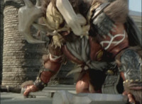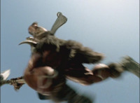 Sharp zoom in on Behemoth getting back on his feet, ready to fight. |