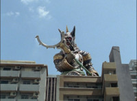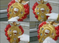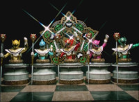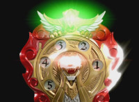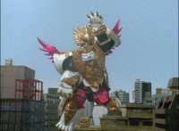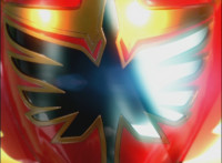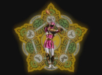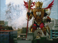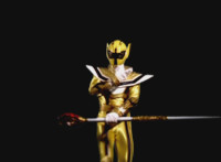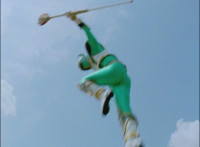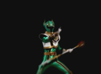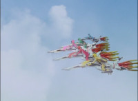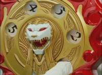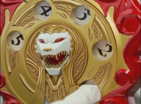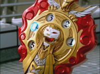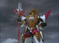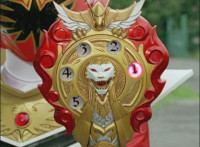 So, the Rangers motion their Mystic Lion Staffs, Red turns the 3 dial on his, and transforms into the Mystic Firebird. The other four Rangers turn their 4 dials, and morph together into the Mystic Lion. Mystic Lion races through the city as Mystic Firebird flies just above them. Mystic Firebird shrieks. |