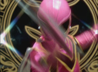 Pink slashes her Magi Staff, causing Titan Megazord to energy slash all approaching boulders into pieces. |