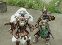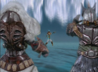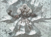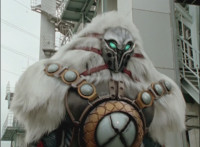 As ice particles rain down, Koragg snags a chunk of 50 Below's chest circle out of the air, looks at it, then tosses it aside and walks off. |
