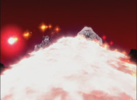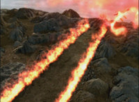 Cuts follow-up zoom in on Manticore in front of flames. |