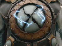 Ursus arrives from the red dimension, rolling and causing sparks around it. |
