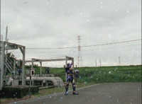 Solar Streak rides into the red dimension, coming to a stop. |