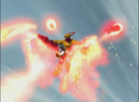 Cuts follow-ups of Lion roaring, Mystic Firebird flying down, and getting shot at by Ursus. |