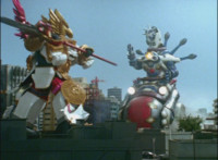 Sentai footage inserted into US footage; cuts follow-up sequence of Titan Megazord vs Ursus, which fails, leading to SSM fighting some more against it. |