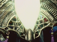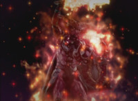 Close on Calindor, as he glows with bright yellow energy, his mouth growing fangs, as his body flares out and approaches Solaris Knight. |