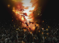 Leanbow ignites his sword aflame, whips it around, and sends a whirlwind of fire forth, ripping through the Hidiacs and Styxoids. |