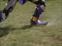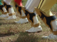 Solar Streak Megazord's boots open up and a pair of little trains shoot out and create golden energy tracks. |