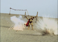 Cuts before dirt burst turns into a fireball explosion (US replaces it with a Disney-approved Kalishplosion, in fact). |