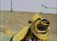 Transitions in; shot is trimmed to remove zoom in on Red; cuts follow-up of Red gesturing in the sun, then Koragg remembering a cloudy sky. |