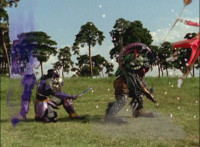 Fades in from black; cuts prior shots of Rangers running; cuts final shot before Red talks a bit; cuts follow-ups of Koragg speaking to team. |