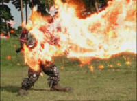 Legend Mode Red dials 1 on his Mystic Lion Staff, Red shoots flames forth. |
