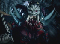 Koragg opens his shield up, and fires energy wolf-heads from it. |