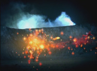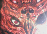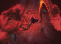 A flashback to the last time Leanbow sealed Octomus into the pool in the ground, where the eye of the Master then zapped him, morphing him into Koragg, who then kneels before the red pool. |