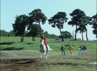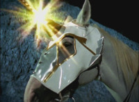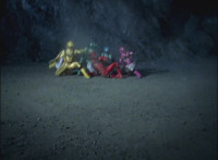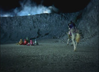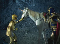 Yellow staggers over to Brightstar, as Solaris Knight dismounts. Brightstar turns and looks, as Solaris Knight points at the Rangers, then runs off. |