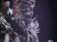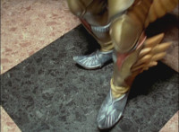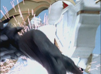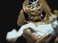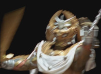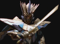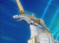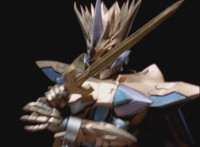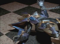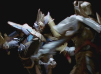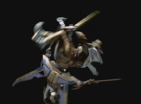 Cuts follow-ups of Phoenix Unizord leaping up and readying sword. |