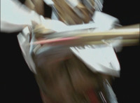 Koragg slashes Red, sending him spinning sparkily. |