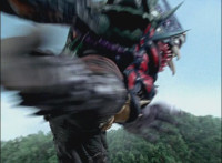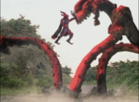 Manticore Megazord gets a red fungus over their body, Centaurus Wolf Megazord sucks it up. |