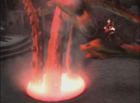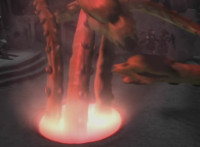 The pool glows red, Octomus' eye appears and flashes with power. |
