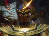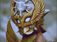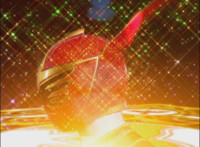 Ancient Mystic Mode Daggeron flies out of the explosion, turning into golden energy, and passing right through Megahorn, exploding him. Daggeron comes to a stop, turns around, poses. Megahorn crackles and sparks. |