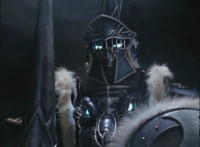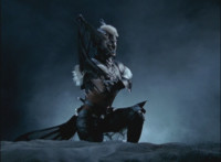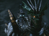 Fades in from black; cuts prior stuff of some Terrors talking; cuts follow-ups of Black Lance stamping his lance down, turning all attention to him. |