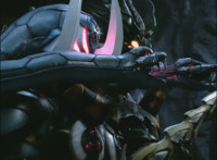 A couple of these shots are shortened a little, final shot cuts before more circling around the team; US replaces follow-ups of Oculous in sniper mode with Oculous in another dimension readying his blade weapon laser thingy. |