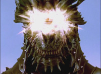 US replaces prior sequence of giant Oculous vs the Titan Megazord due to gunplay; cuts shot 1 before camera pushes in on Oculous; shot 3 cuts before he talks more; cuts follow-up close-ups of Red, then of Oculous. |