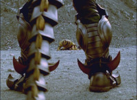 Later sequence of the Rangers vs Oculous, including them all taking him on in the Manticore & Solar Streak Megazords, is cut entirely since a lot of it involved rifle usage. In its place, enjoy a new toy with US replacement of the Battlizer intro! |