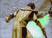 Shot 5 has bullets replaced with laser bolts; US replaces follow-ups of Oculous in sniper mode with him in his fancy effect dimension; also US replaces later stuff where Green summons up rock armor and takes on Oculous, which is ulimately futile since he gets shot until the armor breaks, and he goes bye-bye. |