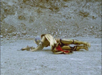 Sharp zoom in on the Rangers in the alley, Blue spots this, shoves Red & Yellow out of the way and takes the blast dead center, bursting her until she falls over. |