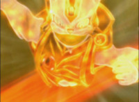 Manticore Megazord whips their staff around and thrusts forth, sending the whirlind of flames forth. |