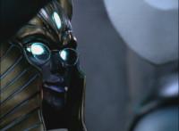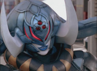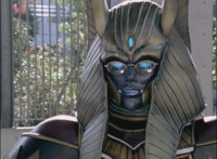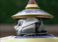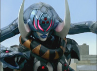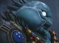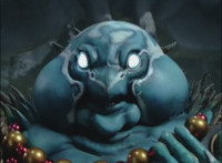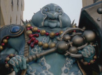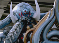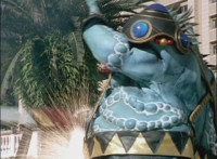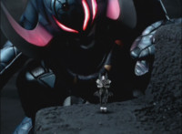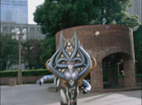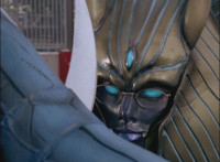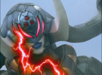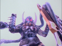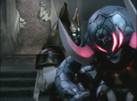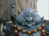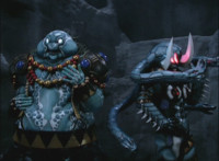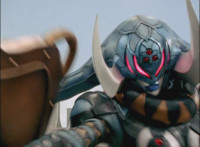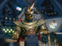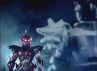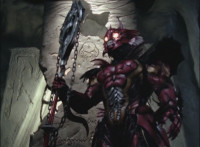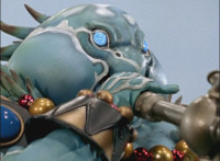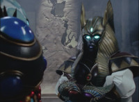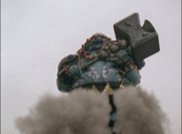 Hekatoid holds his hammer out, then forth at the Solar Streak and Manticore Megazords. In the Underworld, the stone monolith shimmers golden, as does the Octomus etching, and the inscription. Hekatoid ceases trying to blow into the horn part of his hammer, then speaks to the Megazords, before leaping up and drops into the ground, leaving Solar Streak and Manticore watching the dust blow, confused by his retreat. |