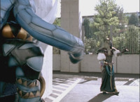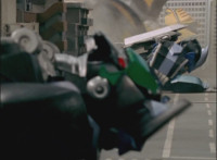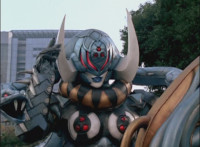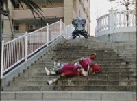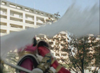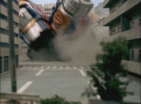 Cuts follow-up of Serpentina approaching downed Megazord. |